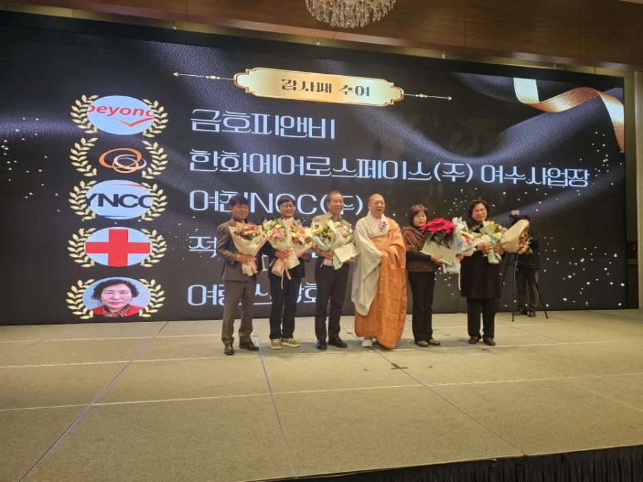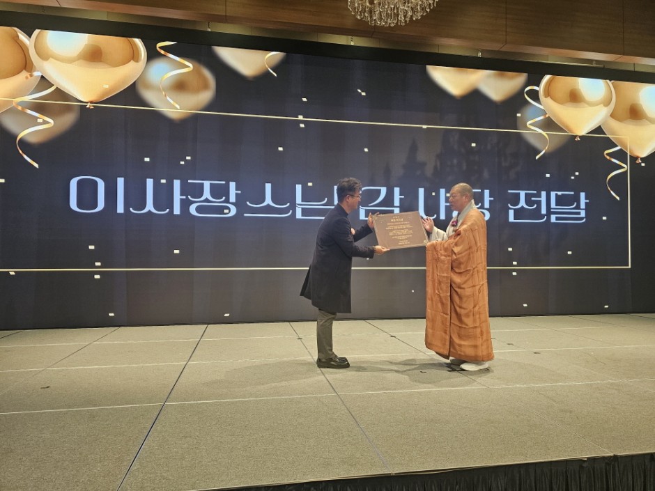 향일암 주지 연규스님께 감사장을 전달하며